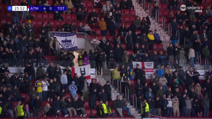 在客场应战 对阵马德里竞赛 的欧冠赛事 中,热刺的客场应战 球迷区在赛事 开始仅25分钟后就出现了大量空座位。球迷们似乎对球队的表现感到失望,在第22分钟热刺丢掉第四个球后,一些热刺球迷已经开始离场。